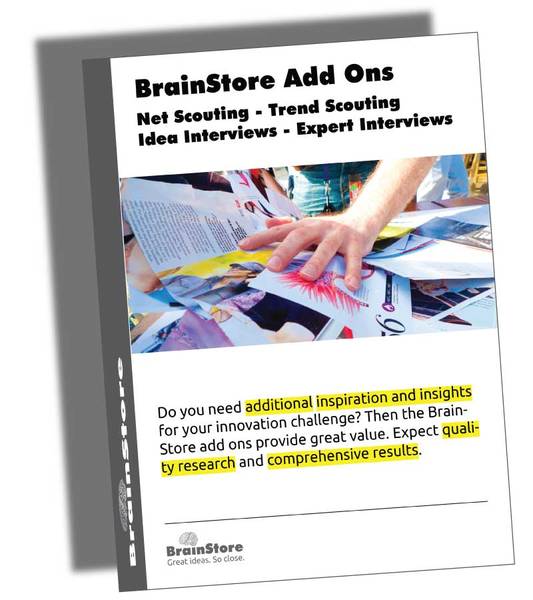 Reichern Sie Ihre Innovationsprojekte mit BrainStore-Zusatzprodukten an. BrainStore unterstützt Sie gerne mit den folgenden Zusatzprodukten: