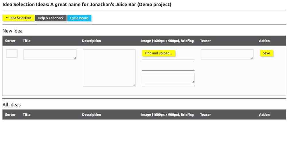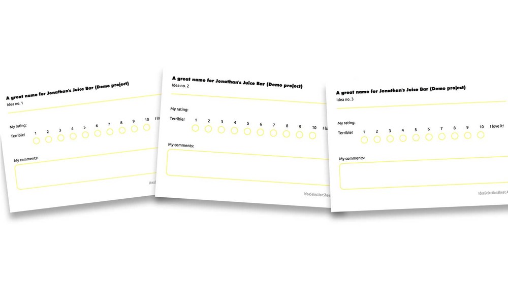 You can additionally print the Idea Selection sheets for your project for the participants.