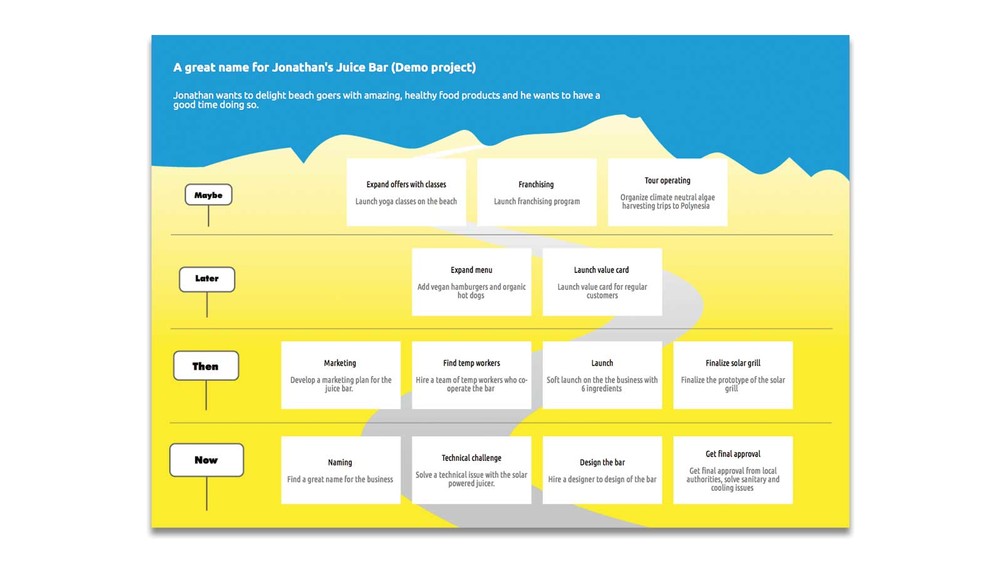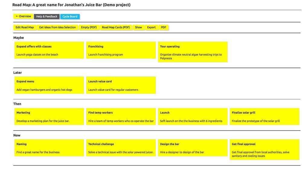 Take the leading ideas from the Idea Selection and place them on your Road Map.