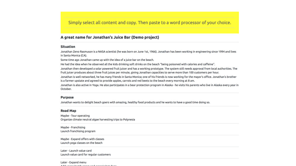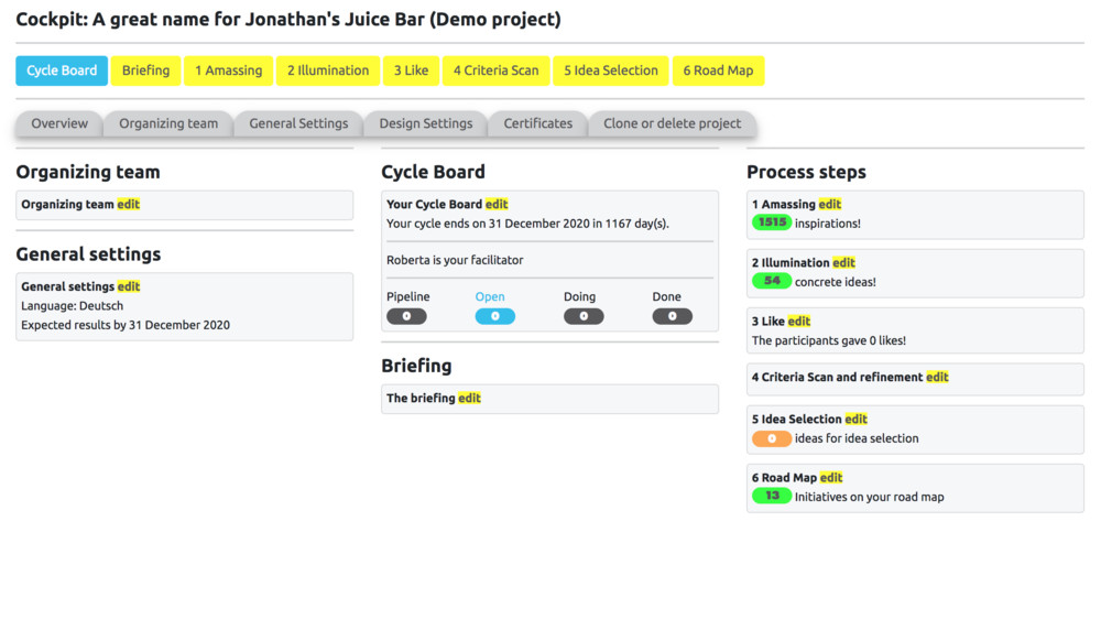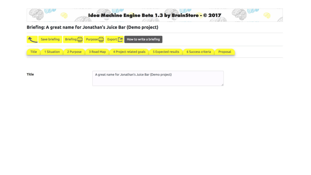 The Idea Machine Engine provides a full template to create and share your briefing with the customer and the organizing team.