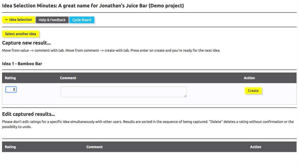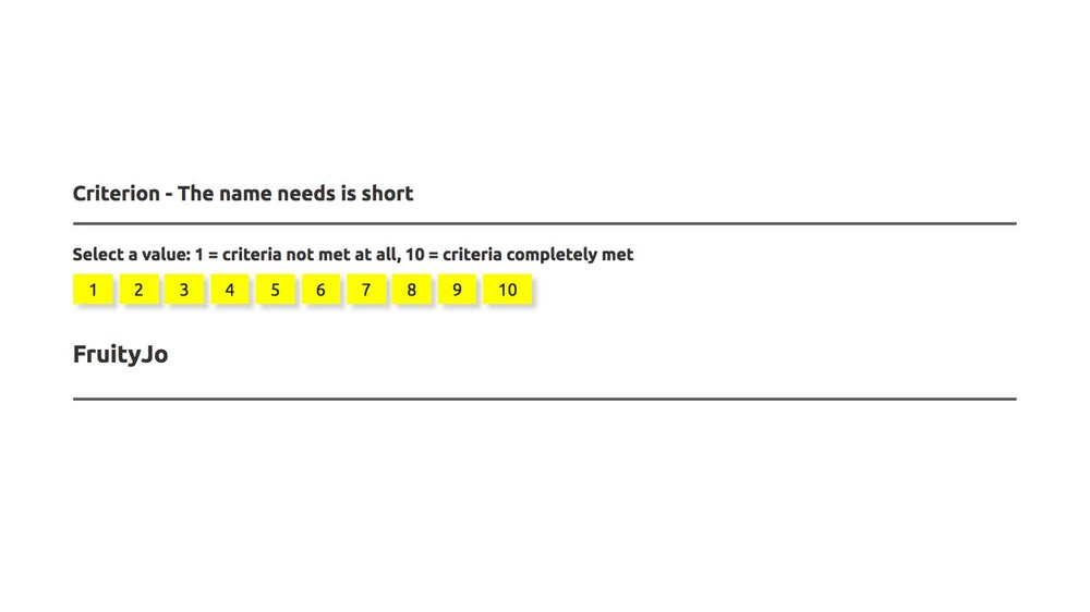 → All participants are presented with the ideas in a random order and rate every idea based on the one success criterion they selected