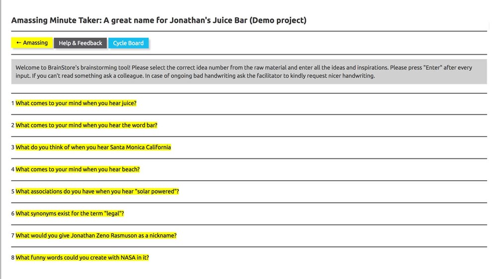 → When logged into BrainStore.com via My BrainStore → Idea Machine Engine (you will also find access there to your most recent projects