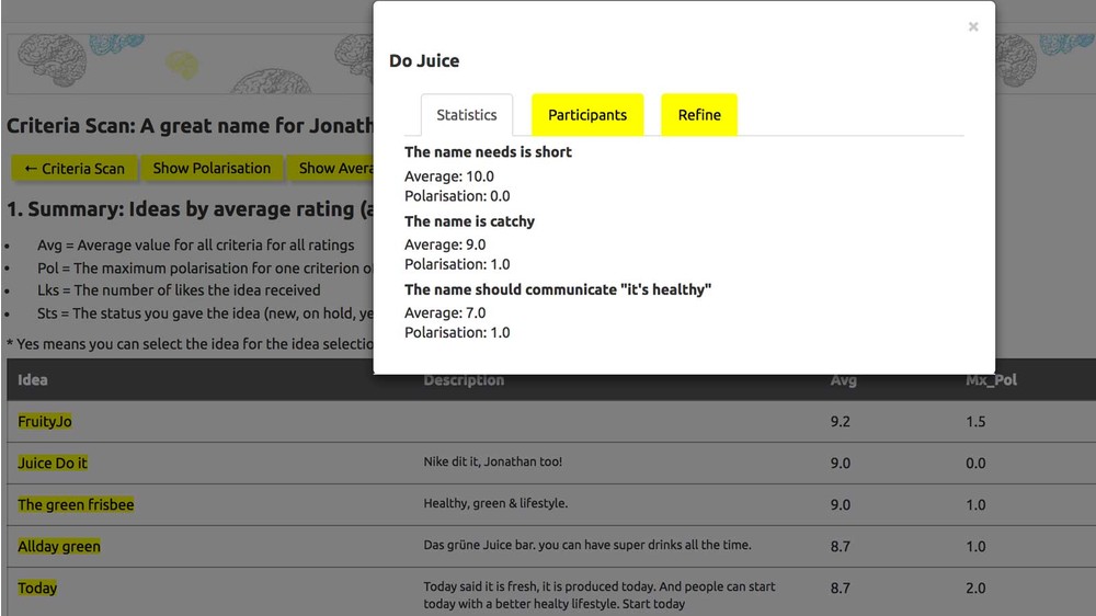 When everyone has completed the rating you have very interesting data showing which ideas are the most promising ones.