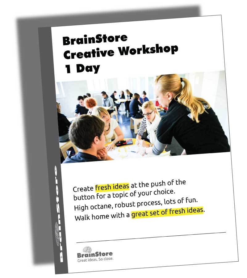 The "Creative Workshop 1 Day" is an intensive workshop to create ideas for a strategic relevant innovation challenge within one day. During the workshop we use the proven BrainStore Idee Maschine process. The workshop is structured in three parts: 1) The amassing phase (goal: quantity). 2) The illumination phase (goal: quality). 3) The like phase (goal: identify the most promising ideas). At the end of the workshop we have a set of concrete ideas, and we know which ideas resonate the most among the participants.